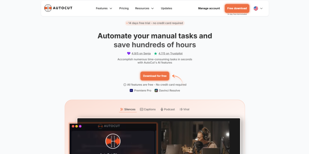 Go to the AutoCut AI official page to access the AutoCut download section. From there, users can choose between the AutoCut video editor for desktop or mobile. The site provides direct installers for CapCut AutoCut desktop, AutoCut plugin Premiere Pro, and AutoCut for DaVinci Resolve, ensuring full compatibility with different editing environments.
